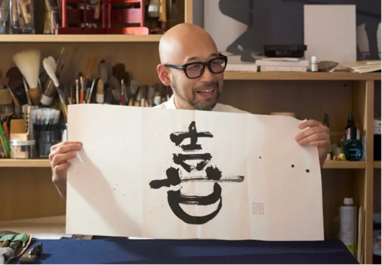 岡山県生まれ。6歳から書道を始める。書の名門・大東文化大学 中国文学科を卒業後、“古代文字” をモチーフとした独自のスタイルを確立。現在はフランス・ボルドーに拠点を構え、ルーヴル美術館公認の関連ロゴマーク制作や、ニューヨーク近代美術館MoMAでパフォーマンスを行うなど、世界中で活躍している。