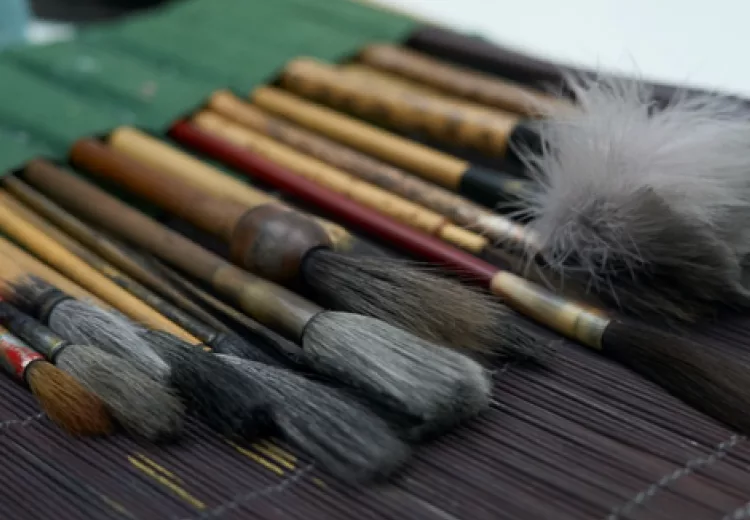 納得のいく作品を追求するため、表現に合わせて紙の質や筆の種類まで道具を使い分け、書道という日本独自の伝統をより自分らしく現代的にアレンジし常に革新しているMaaya 氏。