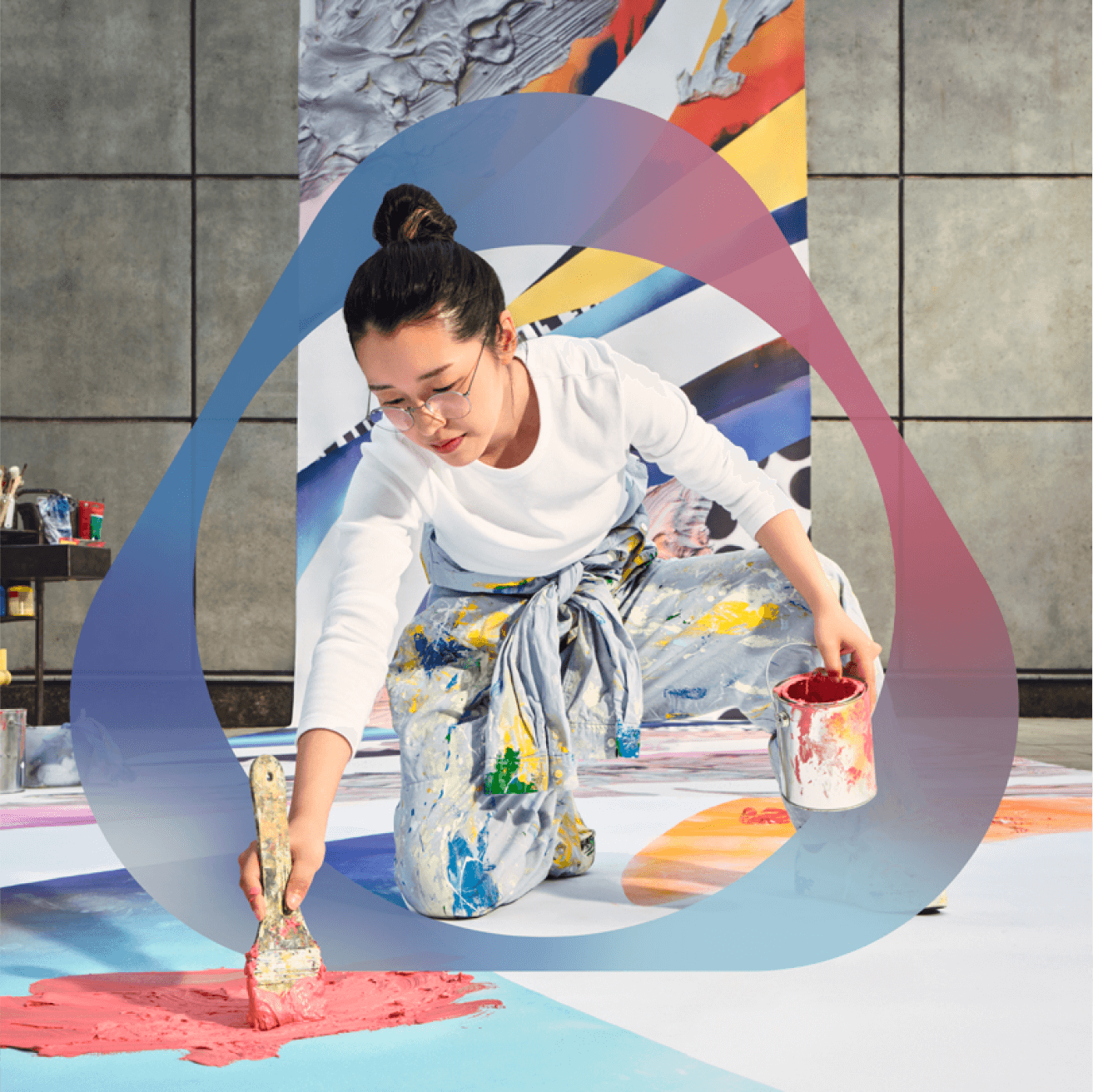 筆やスプレー、シルクスクリーン、絵の具の盛り上がりなど、あらゆる技法を駆使して表現される作品群。松村咲希氏は新しいIQOSの広告を彩るひとりだ。